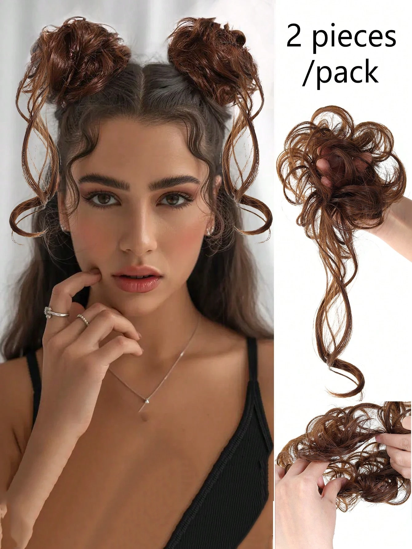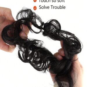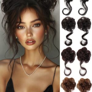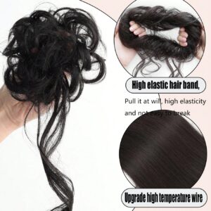 قطعتان من وصلات الشعر لتسريحة الكعكة الفوضوية، تسريحة شعر مرفوعة مموجة مع خصلات، وصلات شعر للشعر المموج والمجعد، وصلات شعر صناعية لتسريحة الكعكة الفوضوية، إكسسوارات شعر للنساء، وصلات شعر لتسريحة الكعكة المرفوعة بشريط مطاطي للنساء