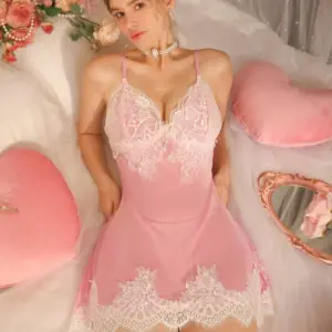 قميص نوم نسائي مثير من ديليكيت ألور، مزين بالدانتيل V، لون وردي