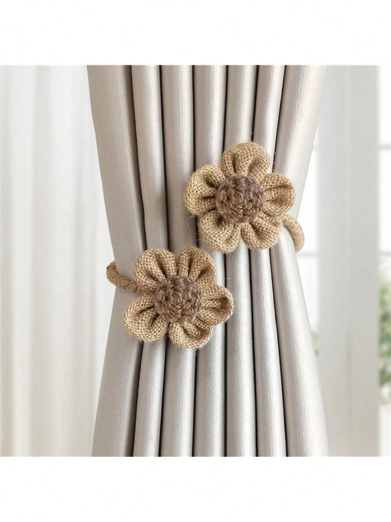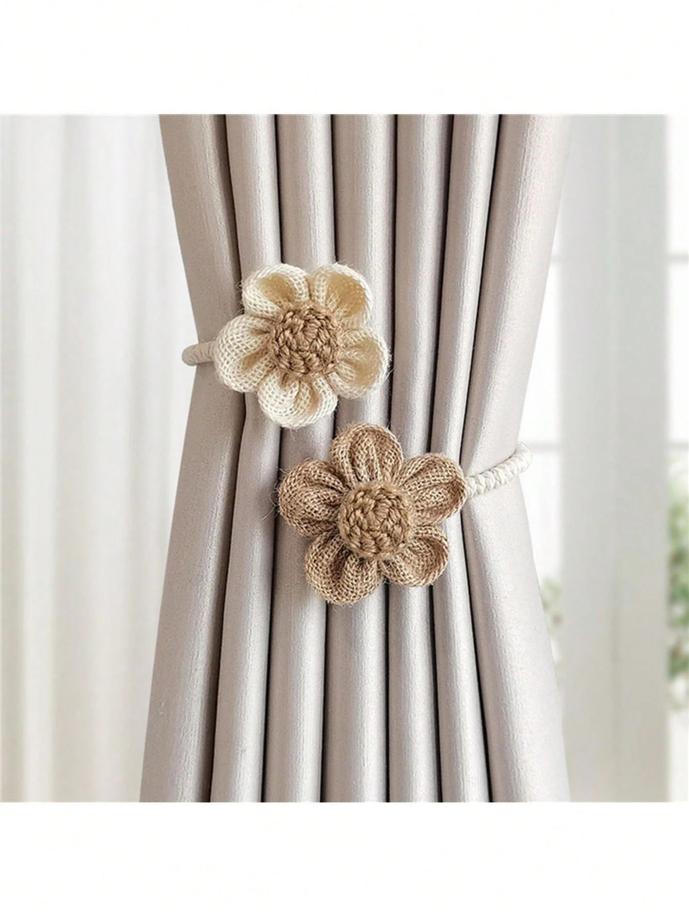 زهرة حبل القنب، ربط الستارة مشبك الستارة حبل بدون مسامير مشبك ستارة حديث بسيط ربط الستارة حامل الستارة لغرفة النوم وغرفة المعيشة ديكور المنزل