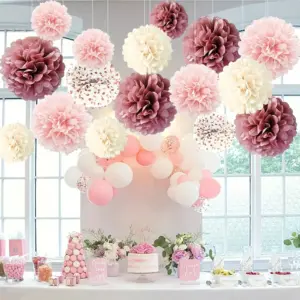 16 كرة بوم ورقية رمادية ووردية، مناسبة لحفلات استقبال المولود، وأعياد الميلاد، والخطوبة، وحفلات توديع العزوبية، وزينة عيد الحب، وزينة الحفلات ذات الطابع الوردي.مناسبة لحفلات استقبال المولود، وأعياد الميلاد، والمناسبات العائلية، وجلسات التصوير، وتضيف لمسة أنيقة وجذابة لأي إطلالة في هذه المناسبات.