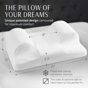 هل تعاني من صعوبة في النوم على ظهرك؟ مع التصميم المريح لوسادة دعم الرقبة YourFacePillow الحاصلة على براءة اختراع، يمكنك الانتقال بسهولة إلى وضعية الظهر. فهي تتوافق مع رأسك، وتحيط بكتفيك، وتضيق تدريجيًا نحو الأسفل لدعم رقبتك.