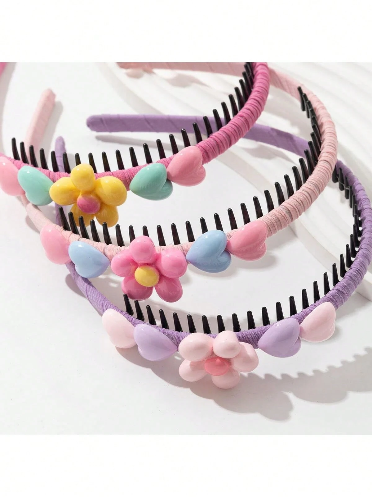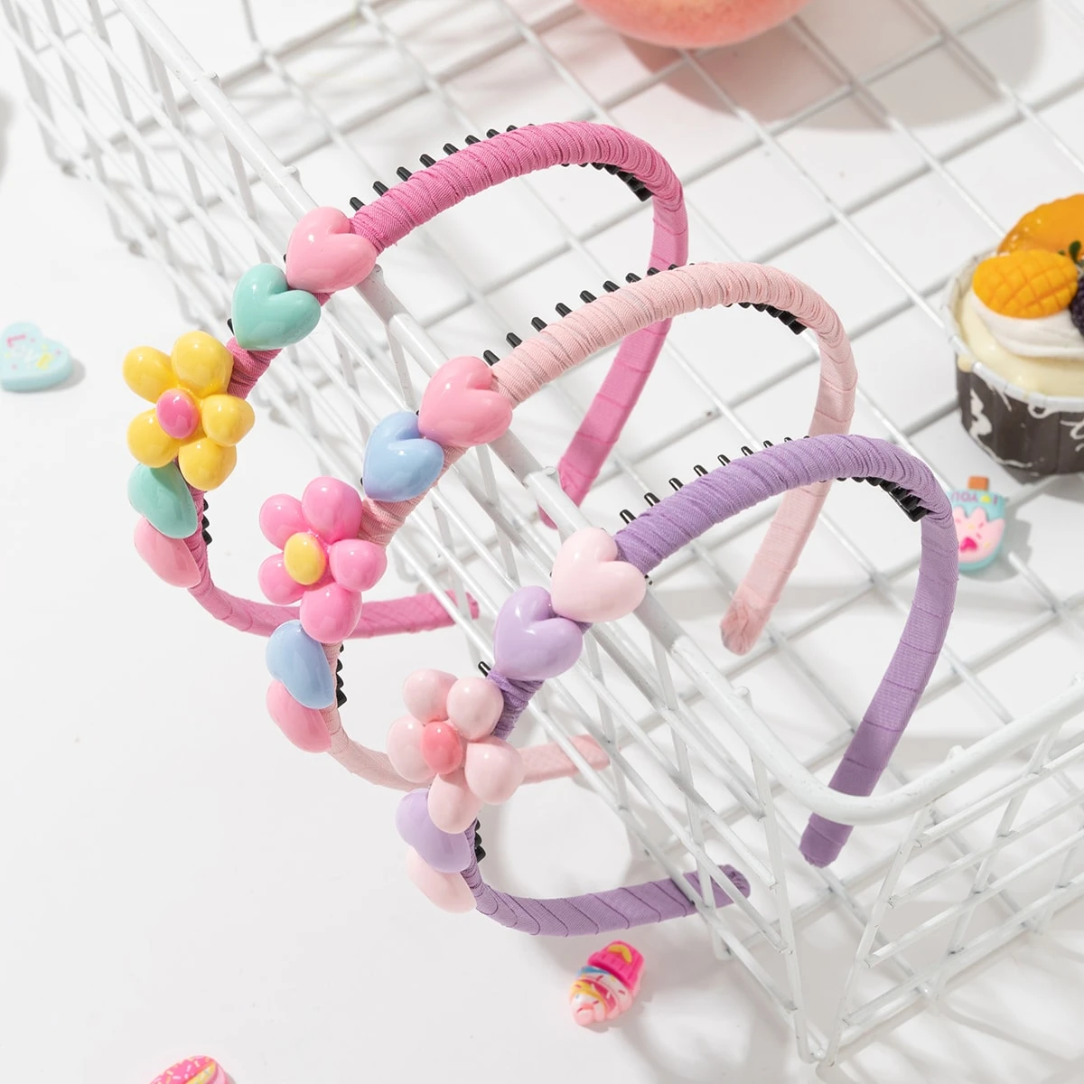 قطع3/مجموعة من إكسسوارات الشعر اللطيفة للفتيات، مشابك شعر مع أسنان، رباط شعر على شكل قلب خوخي وزهرة كبيرة